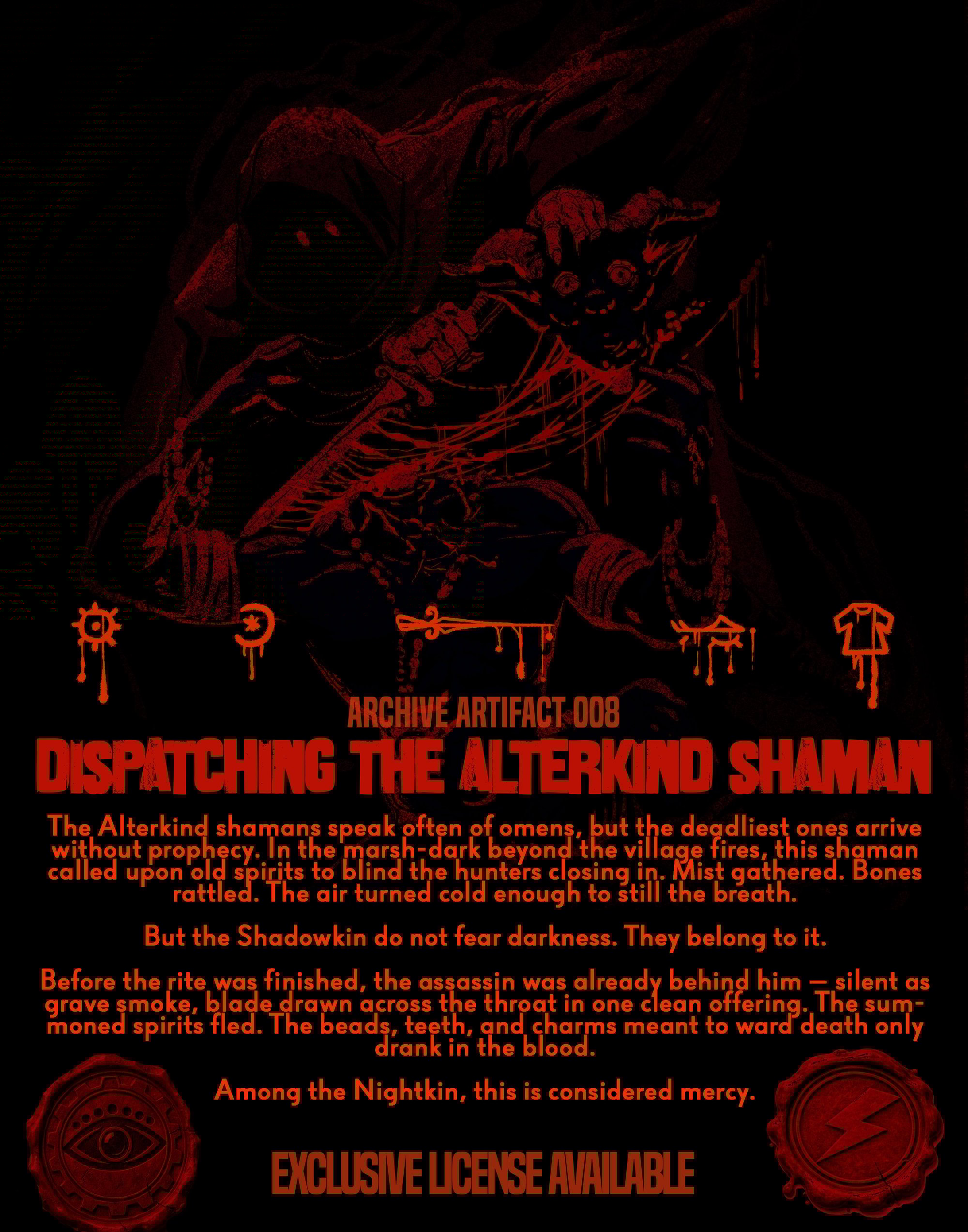 Licenses include the artwork license and complimentary integration of your existing logo only and do not include logo design, alternate layout explorations, or expanded merch package development. Additional customization can be commissioned separately after the artifact has been purchased for licensing.